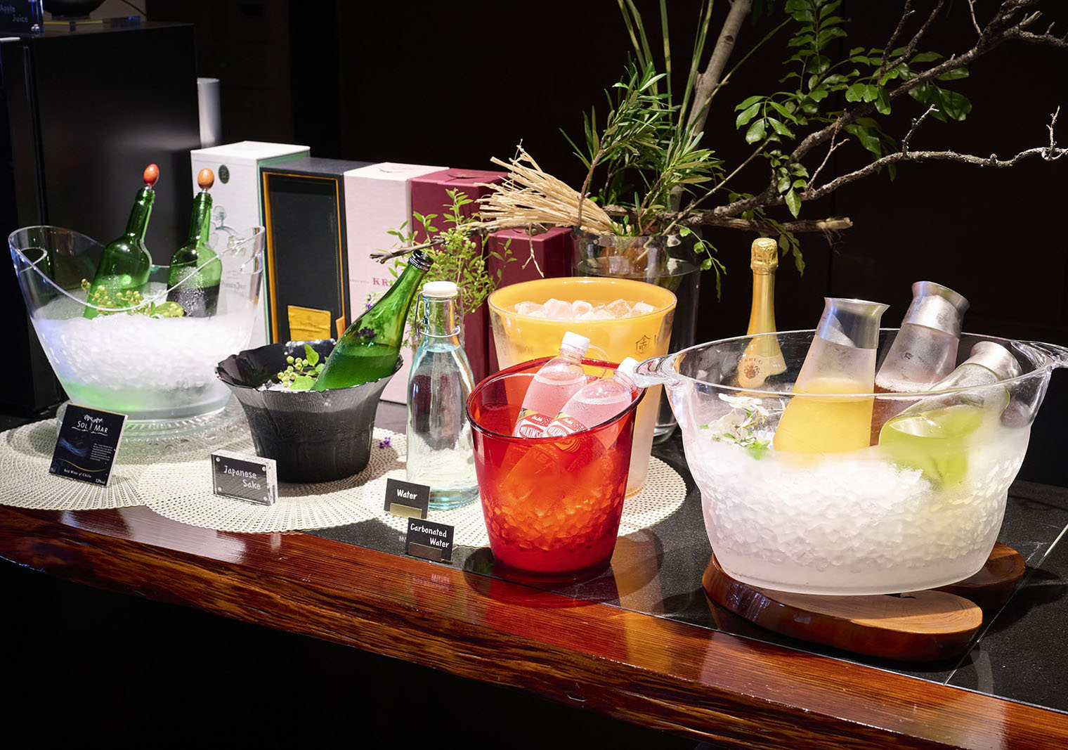 松屋本館 ラウンジ「水庭」では、《イブニングカクテルタイム》(19:00~22:00)のお時間帯、ワインやカクテルなどの一部ドリンクや軽いおつまみをご提供しております。
