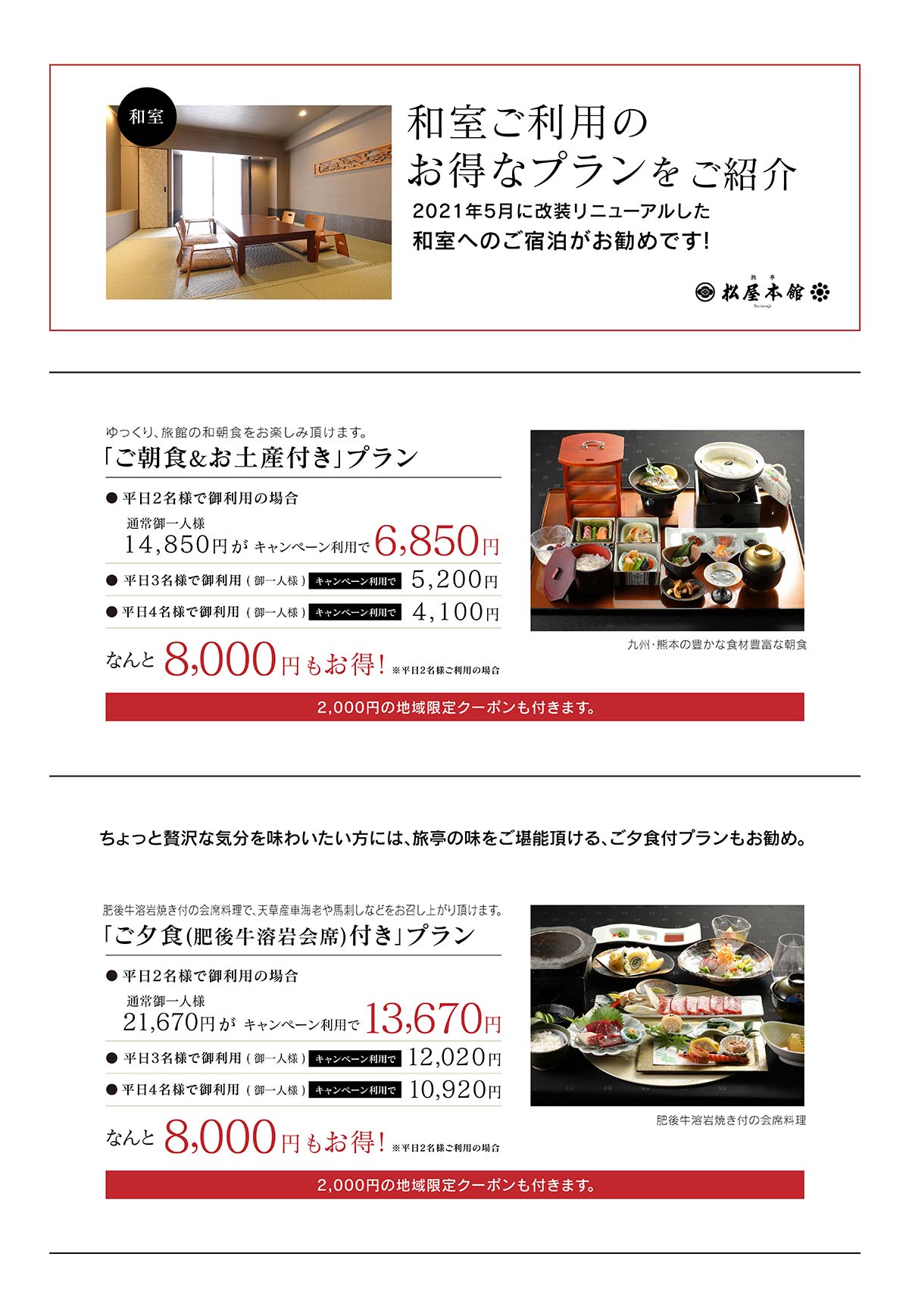 キャンペーン利用でお得に泊まれるプラン ご予約受付中松屋本館
