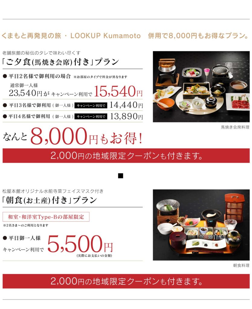 また、詳しいご利用条件などは 下記キャンペーンサイトよりご確認ください。 くまもと再発見の旅 公式HP LOOKUP Kumamoto キャンペーン公式サイト