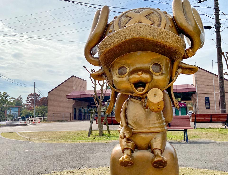 2020年11月、ONE PIECE熊本復興支援プロジェクトの一環として、熊本市動植物園正門入口前に設置されました。チョッパーは船医としてルフィ達と旅するトナカイのキャラクターで、地震によって傷ついた動物たちを癒し、来園する子供達に笑顔をという思いが込められています。また、動植物園内では「チョッパー」と名付けられたシフゾウも飼育されています。