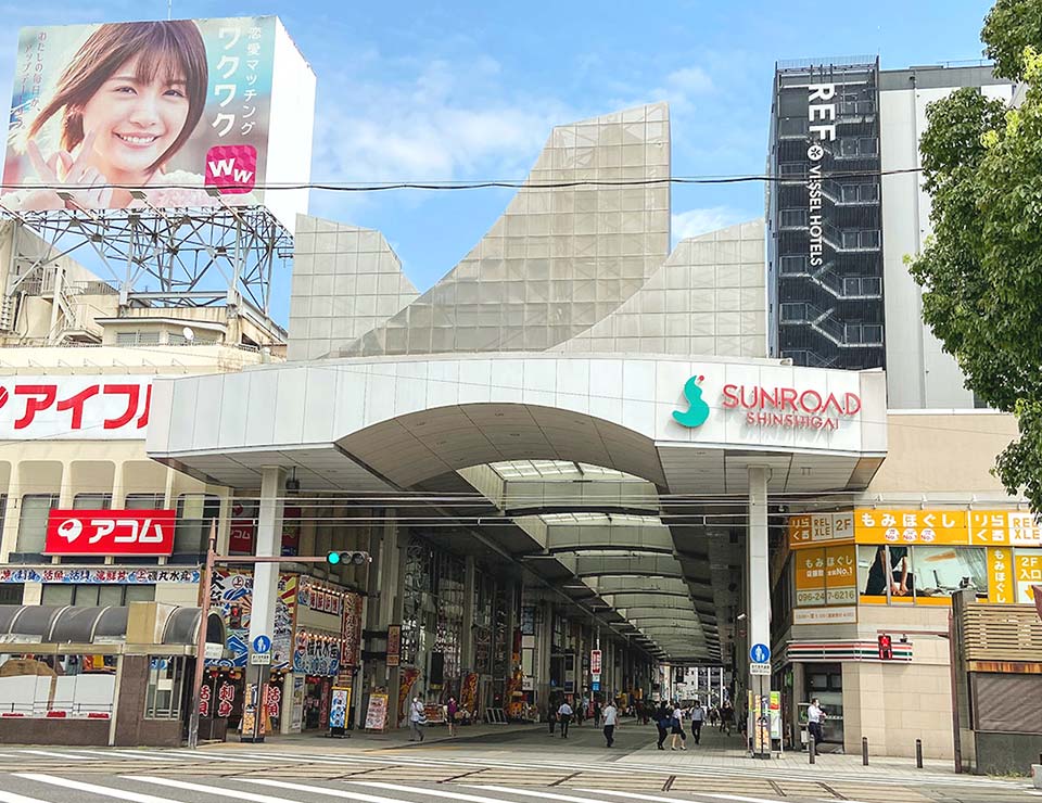 熊本県最大の繁華街。下通りは西日本最大級の幅を持つアーケードで、ファッションやアミューズメントの中心地であると同時に、カフェや郷土料理店などの飲食店が軒を並べるグルメ街です。上通りは3代目のアーケードで、パリのオルセー美術館を模したものです。両側に並ぶ建物の3階部分までがアーケード内に面しており、飲食店、衣料品店、書店などの専門店が軒を並べています。上通り・下通りを散策後は、2019年9月にOPENしたサクラマチクマモトでも、お食事やショッピングをお楽しみ頂けます。